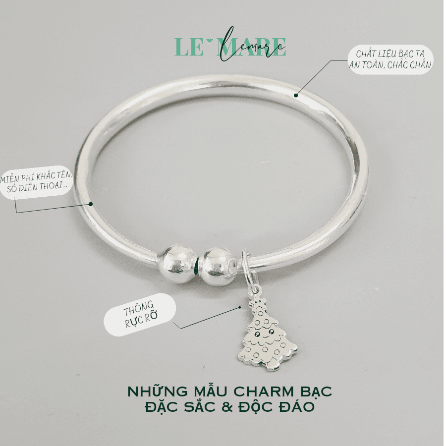 Vòng bạc làm quà thôi nôi, đầy tháng, sinh nhật: Vòng bạc ta CR 01 khắc tên mix charmLe’Mare Jewelry