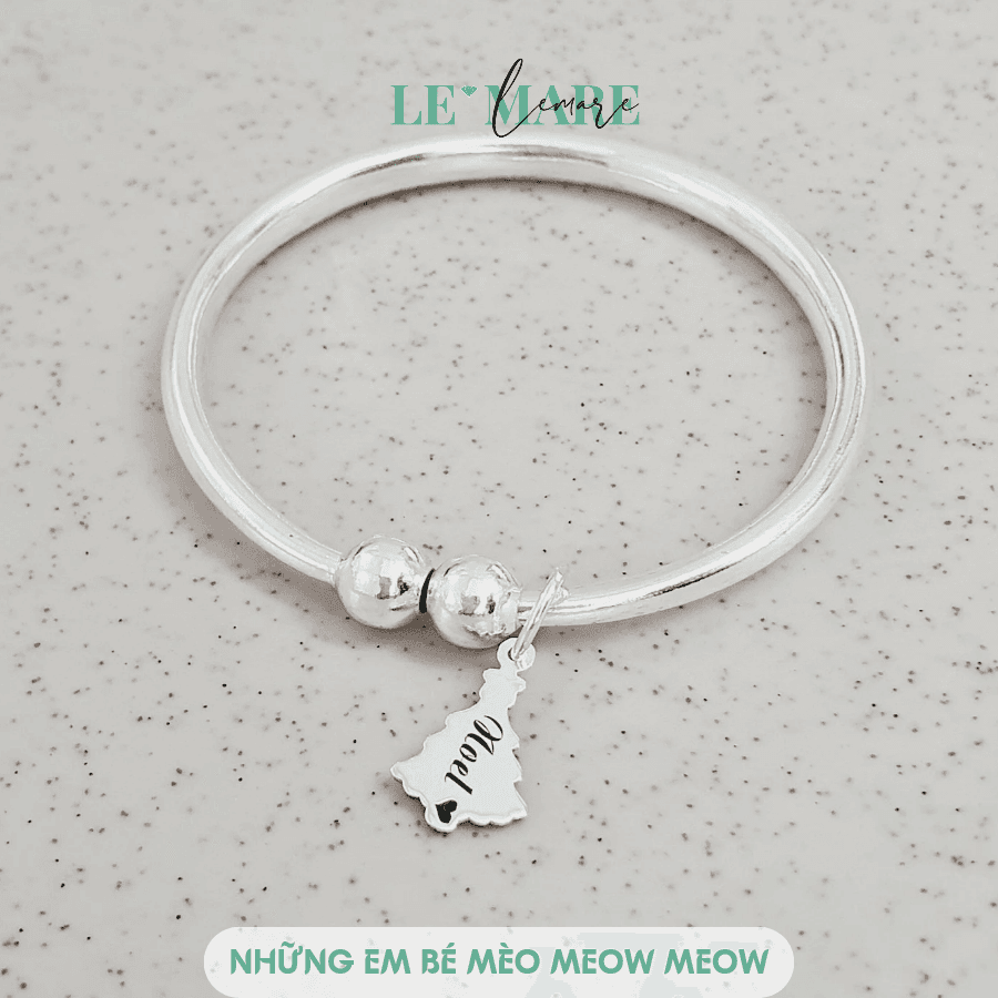 Vòng VS 3 bi bạc ta mix charm Mèo thiết kế Le’Mare Jewelry làm quà thôi nôi, đầy tháng, sinh nhật …