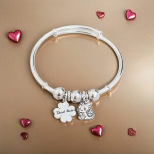 Quà tặng bạc đáng yêu cho bé: Vòng bạc ta PN02 mix charm thiết kế khắc tên bé yêu Le’Mare Jewelry