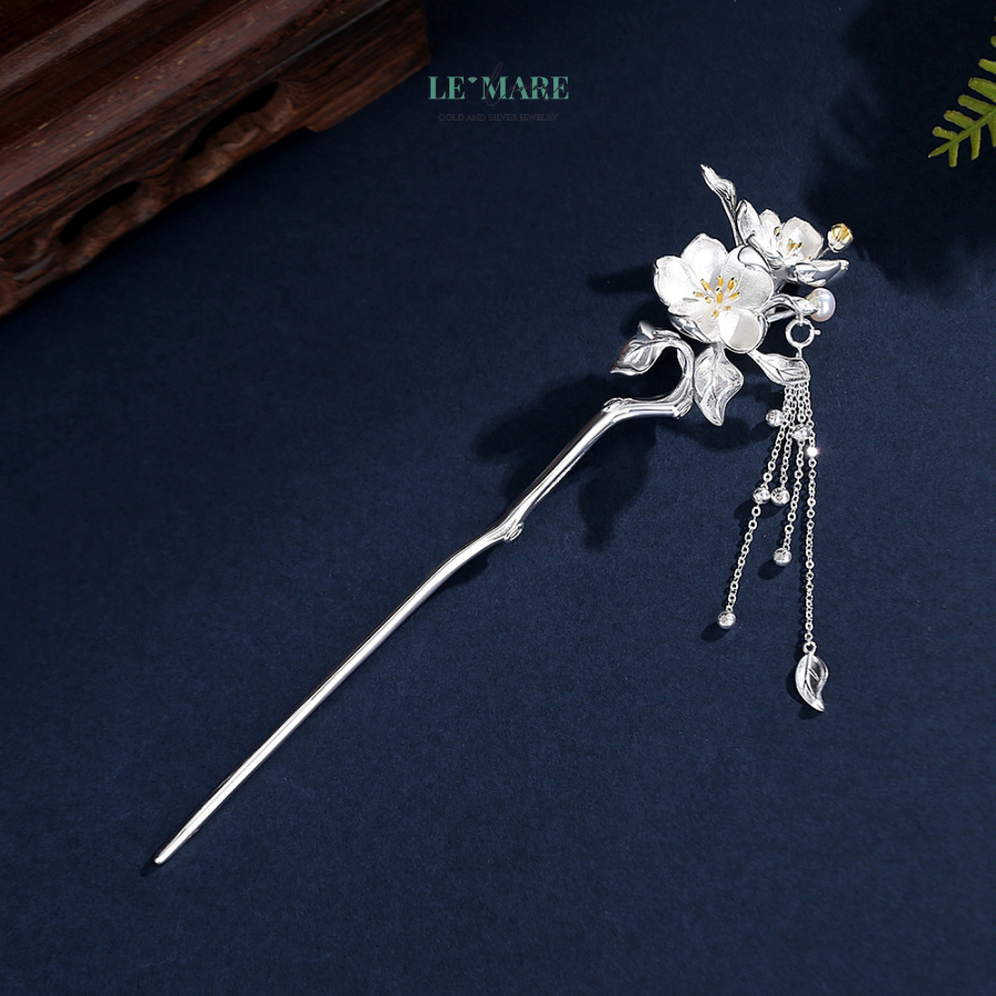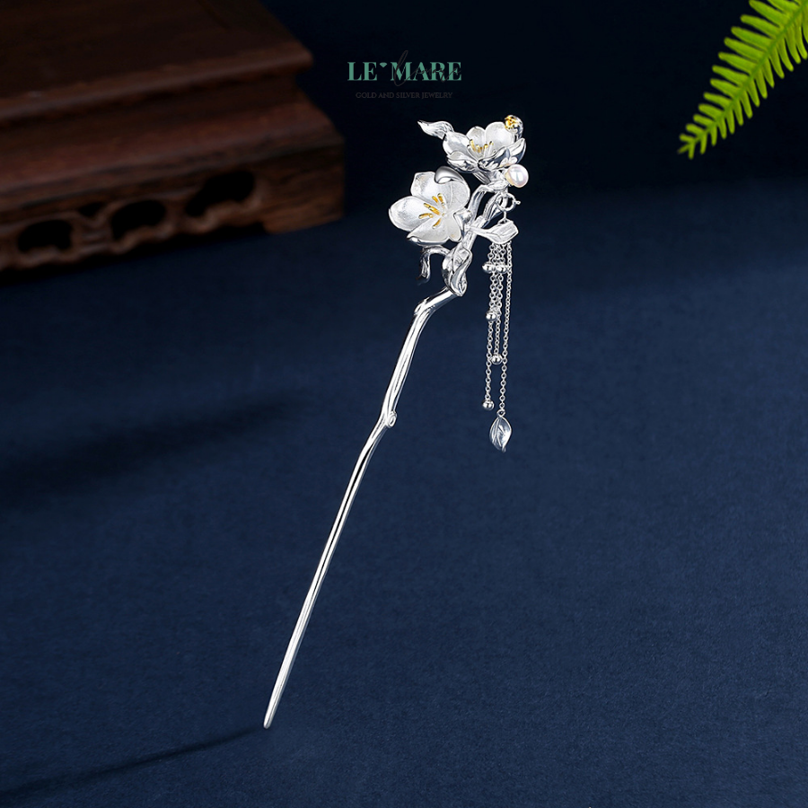 Trâm Cài Tóc Nhành Mai Chúc Lộc Bạc S925 – Xuân An Vui, Lộc Phúc Đong Đầy BNTC28