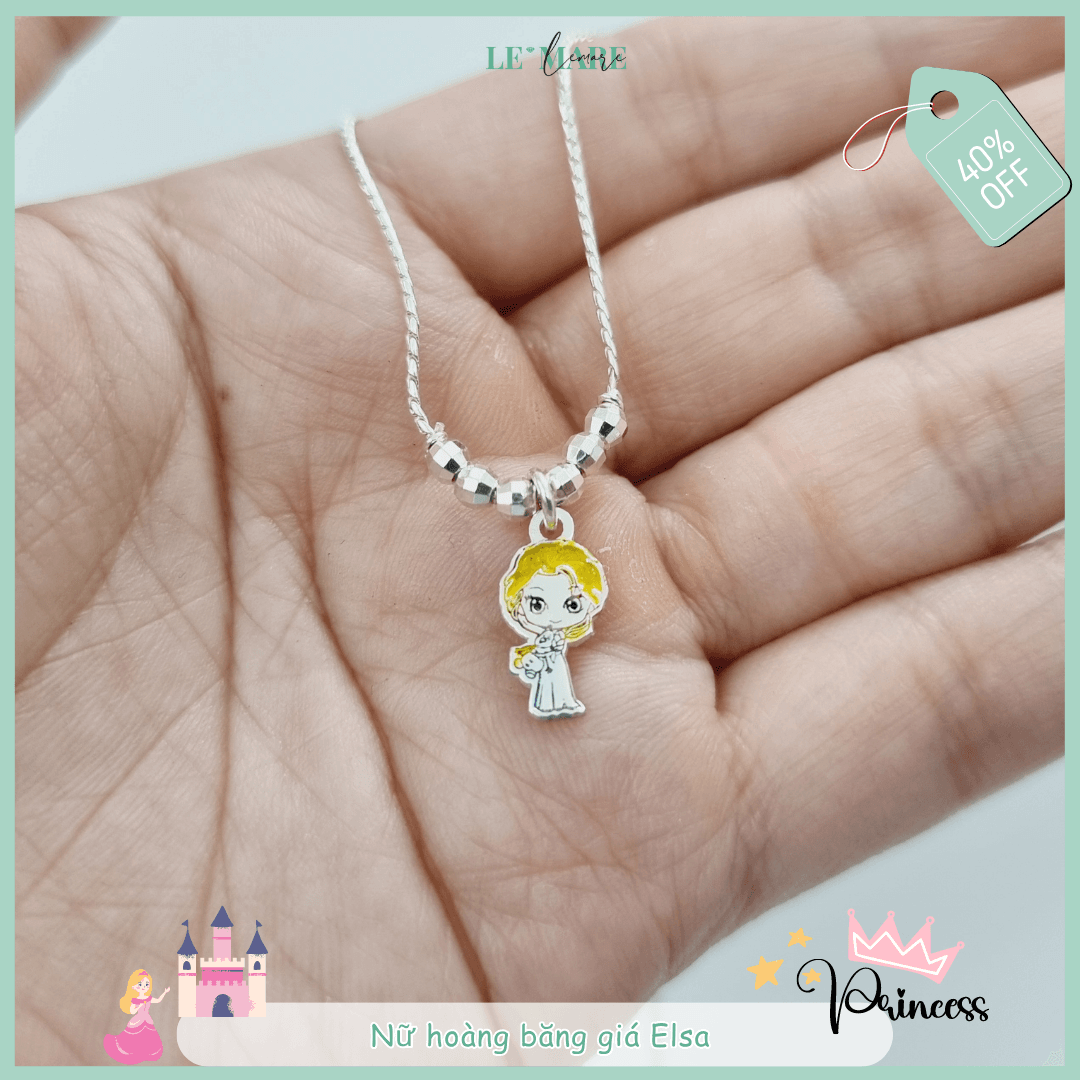 Dây chuyền S 6 bi nhỏ bạc ta mặt Nữ hoàng tuyết Elsa Le’Mare Jewelry đáng yêu, xinh xắn, tô điểm trên chiếc cổ nhỏ xinh của con, là món quà đầy ý nghĩa cho trẻ trong những dịp đặc biệt như thôi nôi, đầy tháng, sinh nhật, tết Trung Thu,…
