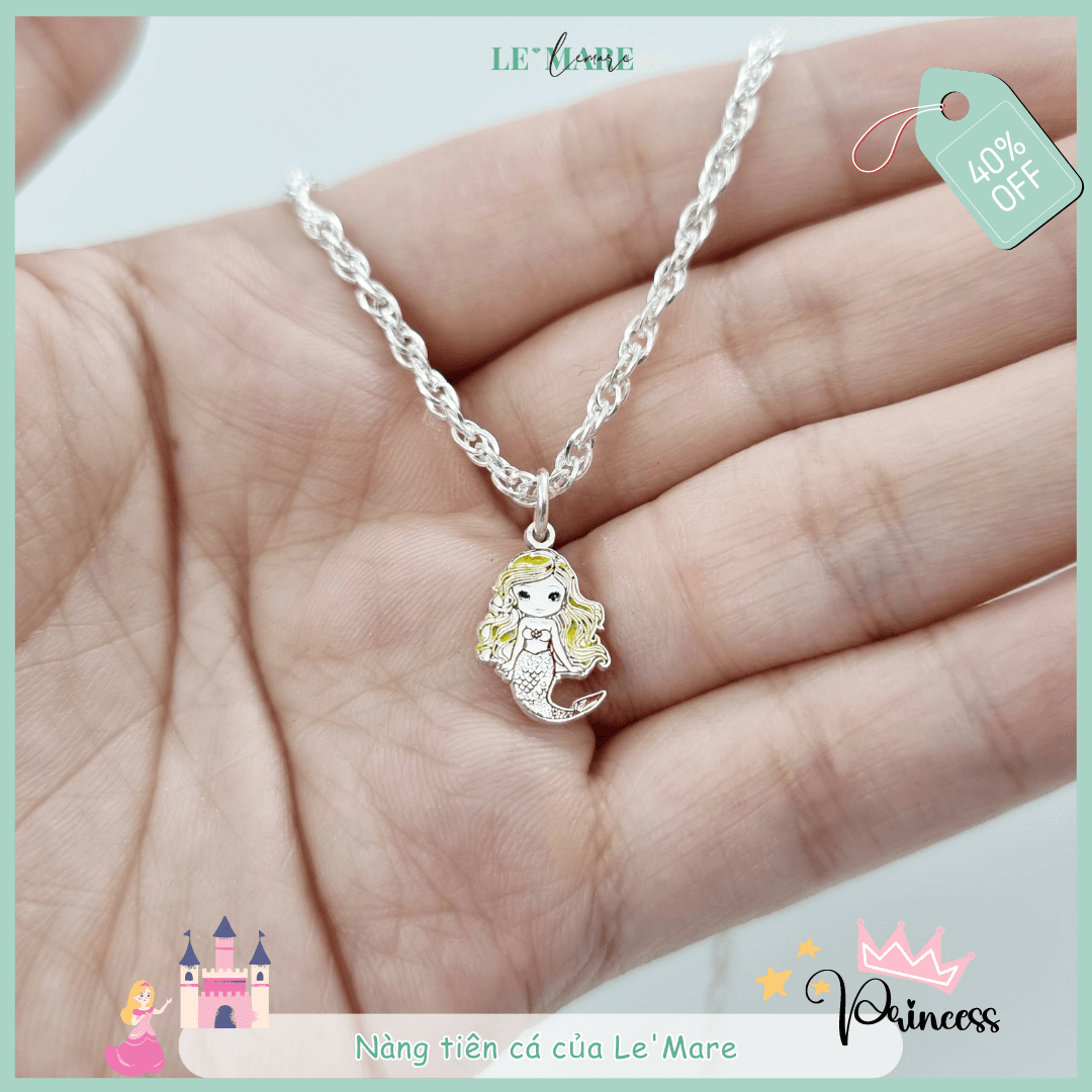 Dây chuyền xoắn nhỏ bạc ta mặt nàng tiên cá Le’Mare Jewelry đáng yêu, xinh xắn, tô điểm trên chiếc cổ nhỏ xinh của con, là món quà đầy ý nghĩa cho trẻ trong những dịp đặc biệt như thôi nôi, đầy tháng, sinh nhật, tết Trung Thu,…