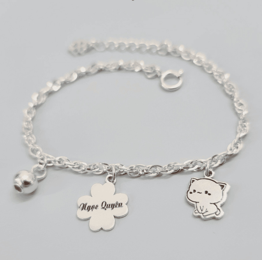 Chiếc lắc bạc nhỏ xinh mang ý nghĩa cầu mong sức khỏe, may mắn và bình an sẽ tới với bé.