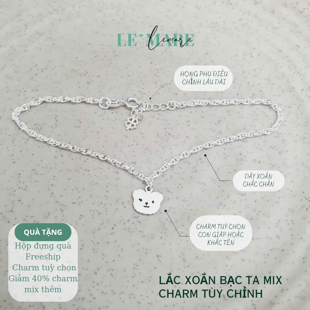 SALE 50% Lắc tay xoắn bạc ta mix charm thiết kế Le’Mare Jewelry – món quà ý nghĩa dành cho bé yêu các dịp thôi nôi, đầy tháng, sinh nhật và các ngày kỷ niệm đặc biệt …