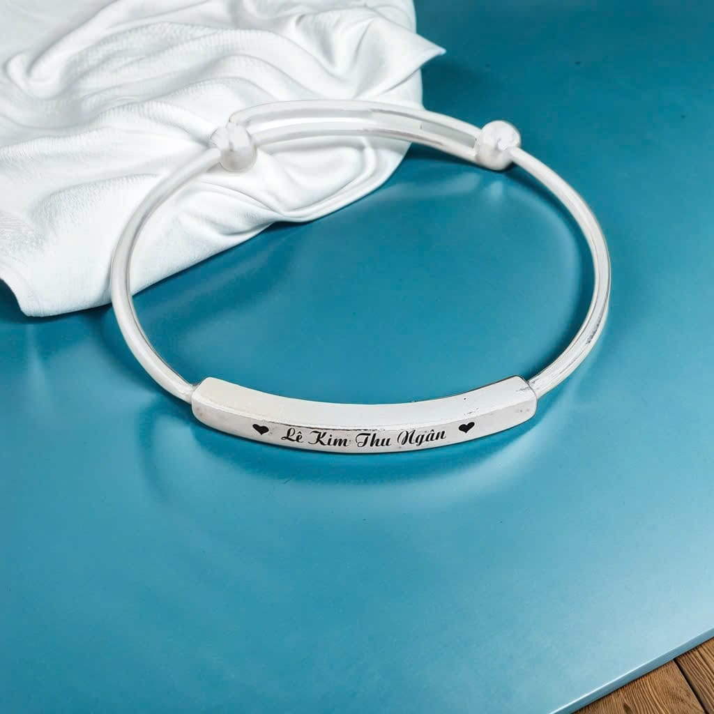 Sản phẩm mang dấu ấn đặc trưng của con qua những chiếc tên tuyệt đẹp được khắc tỉ mỉ lên thân vòng, được làm từ bạc ta trắng sáng, không lo bị đen, xỉn màu.