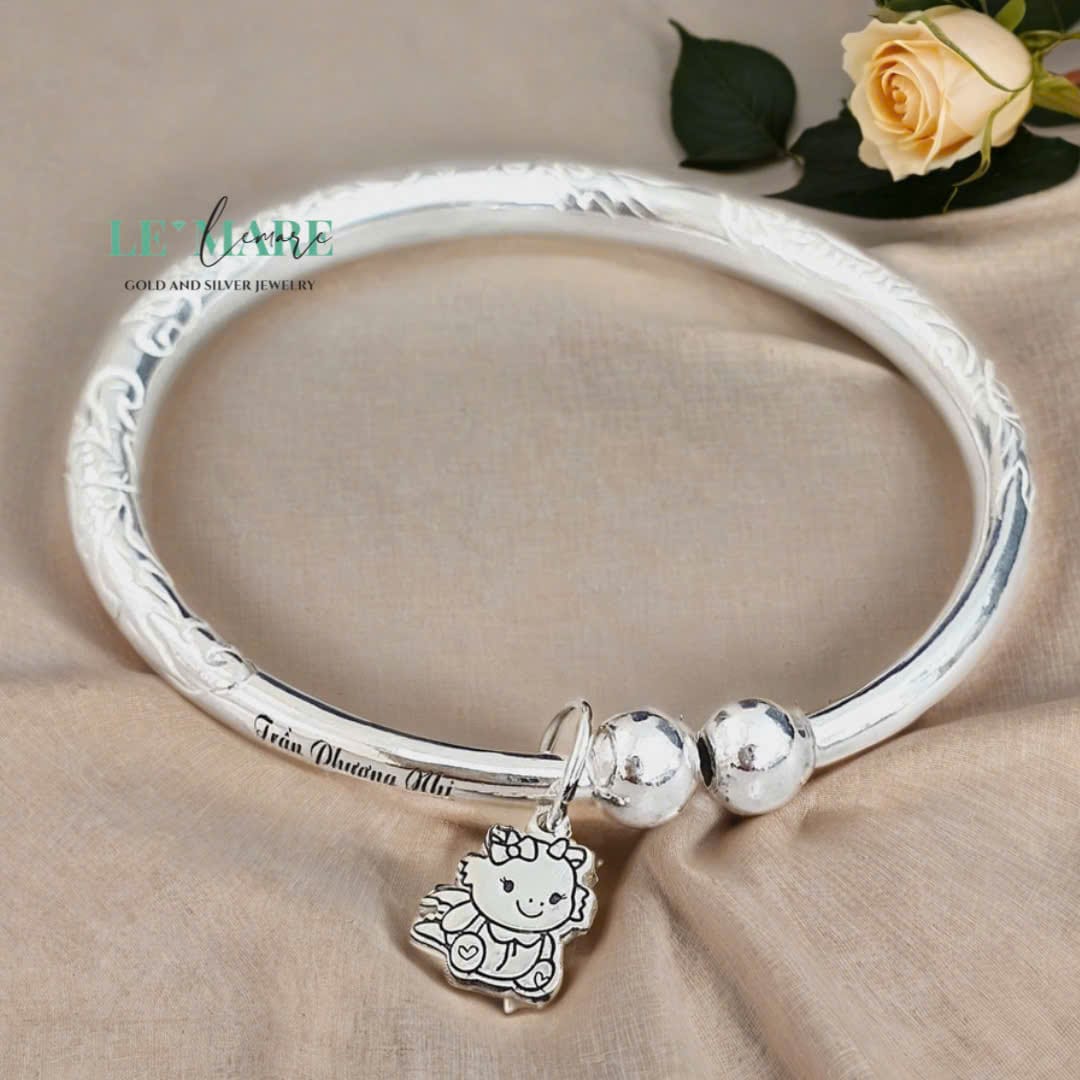 Vòng bạc ta CR 01 khắc tên mix charm và chuông Le’Mare Jewelry LMJ là vòng chạm rồng có khắc tên tinh tế, khắc tên miễn phí mang vẻ đẹp đáng yêu, các chi tiết được mài dũa cẩn thận, an toàn tuyệt đối cho bé.