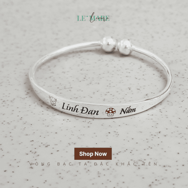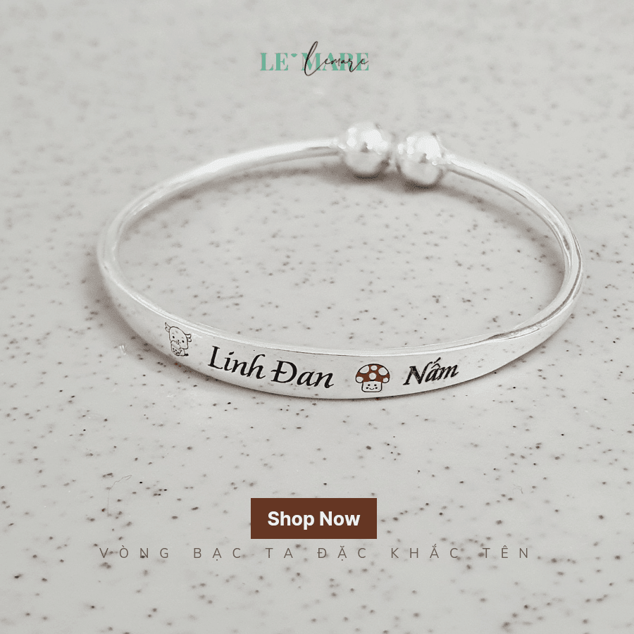 Sản phẩm mang dấu ấn đặc trưng của con qua những chiếc tên tuyệt đẹp được khắc tỉ mỉ lên thân vòng, được làm từ bạc ta trắng sáng, không lo bị đen, xỉn màu.