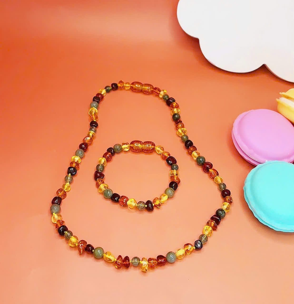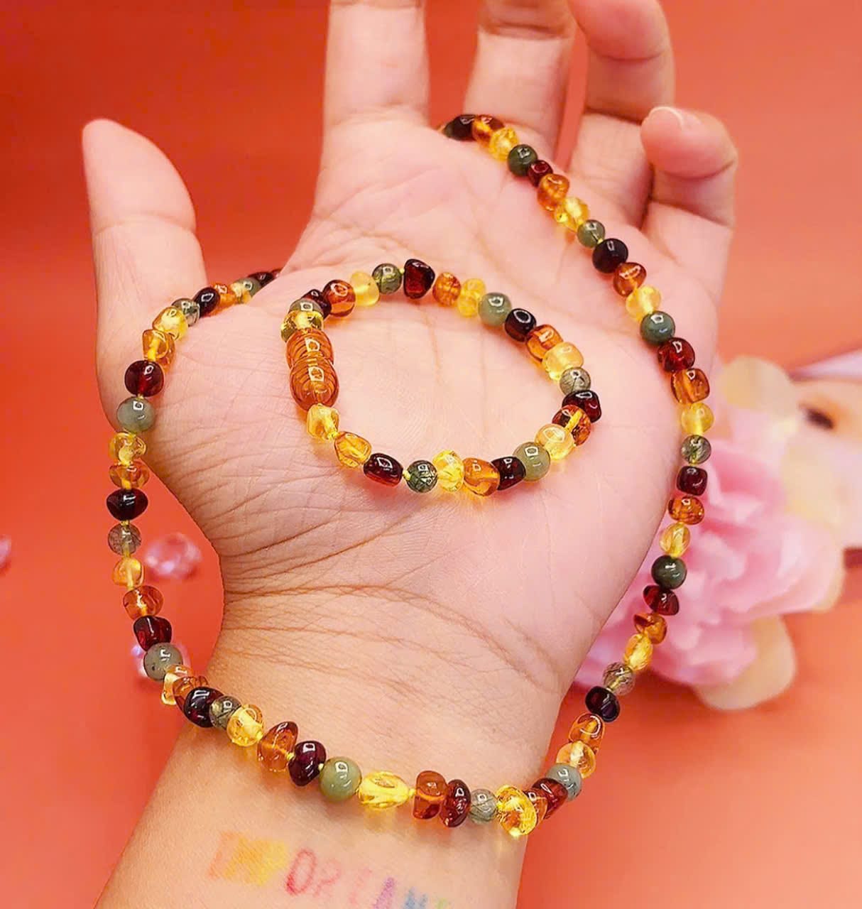 Bộ dây chuyền và lắc tay hổ phách vàng trong Le’Mare Jewelry – món quà ý nghĩa dành cho bé yêu các dịp thôi nôi, đầy tháng, sinh nhật và các ngày kỷ niệm đặc biệt …