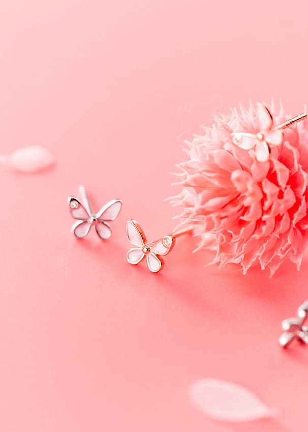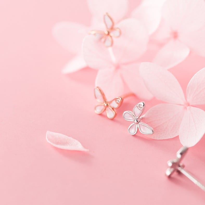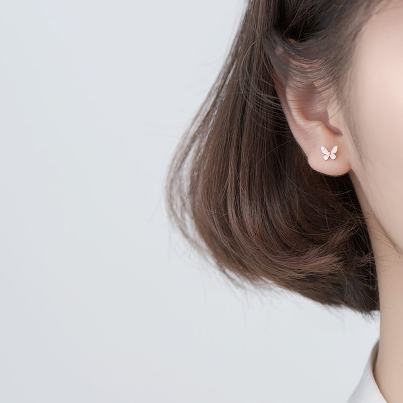 Khuyên bạc S925 với thiết kế hình bướm nạm đá mang lại nét đẹp ngọt ngào.