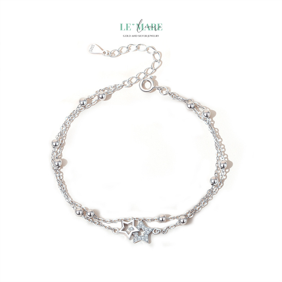 Lắc tay bạc Song Tinh được thiết kế với sự tinh tế và độc đáo, tạo nên một hình ảnh đôi ngôi sao sáng rực rỡ, tựa như sự gắn kết không thể tách rời giữa hai người. Được chế tác từ bạc cao cấp, chiếc lắc tay này mang lại vẻ đẹp thanh thoát, dễ dàng làm nổi bật sự quý phái và sang trọng của người đeo. Hai ngôi sao, như một đôi bạn đồng hành, luôn tỏa sáng, dẫn lối nhau trong không gian vô tận của tình yêu và sự gắn kết.