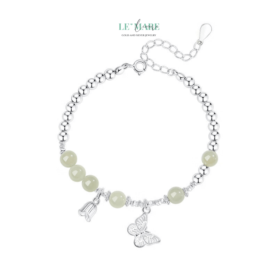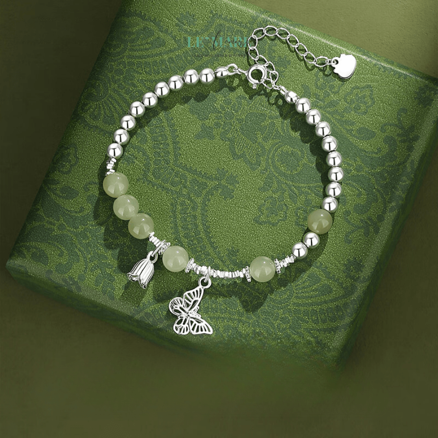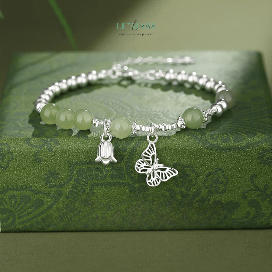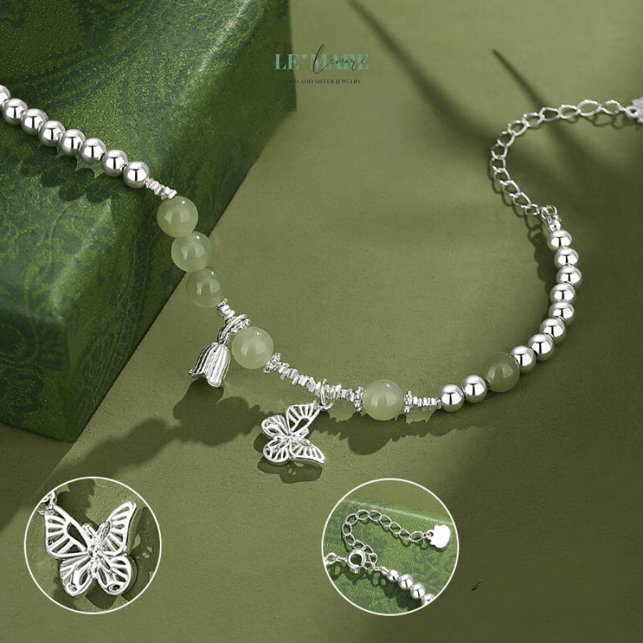 Có những món trang sức không chỉ tô điểm cho cổ tay, mà còn khơi gợi một cảm xúc, một ký ức dịu dàng. “Thanh Điệp” – chiếc vòng tay bạc nữ được chế tác từ ngọc bích quý giá – là một tác phẩm như thế. Như cánh bướm lặng lẽ đáp xuống nhành hoa, chiếc vòng là hiện thân của vẻ đẹp mong manh nhưng sâu sắc, dịu dàng mà vững bền.
