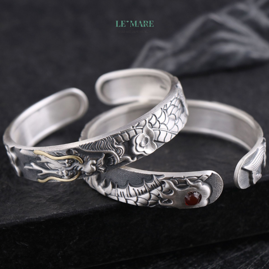 Rồng trong thiết kế vòng tay bạc Minh Long không chỉ là một hình ảnh trang trí, mà là biểu tượng của sức mạnh, quyền lực và sự uy nghiêm.