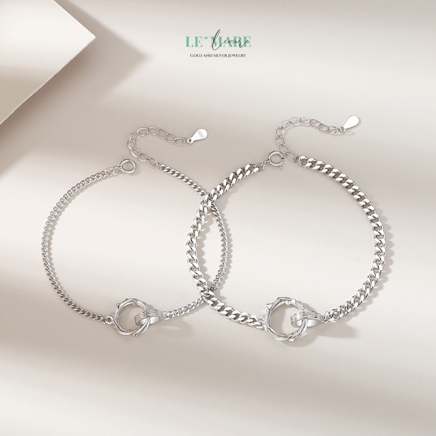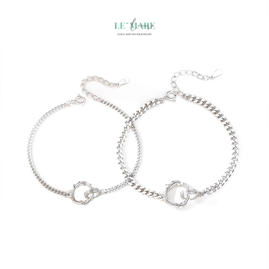 Chất liệu bạc cao cấp giúp cho vòng tay trở nên bền đẹp và sáng bóng theo thời gian. Hình ảnh hai hình tròn đan xen không chỉ đơn giản là một thiết kế, mà còn là sự ẩn dụ cho tình yêu luôn bền vững, dù có bao nhiêu thử thách trong cuộc sống. Vòng tay bạc đôi này không chỉ là món trang sức, mà là biểu tượng của sự hòa hợp và sự kết nối vĩnh cửu.