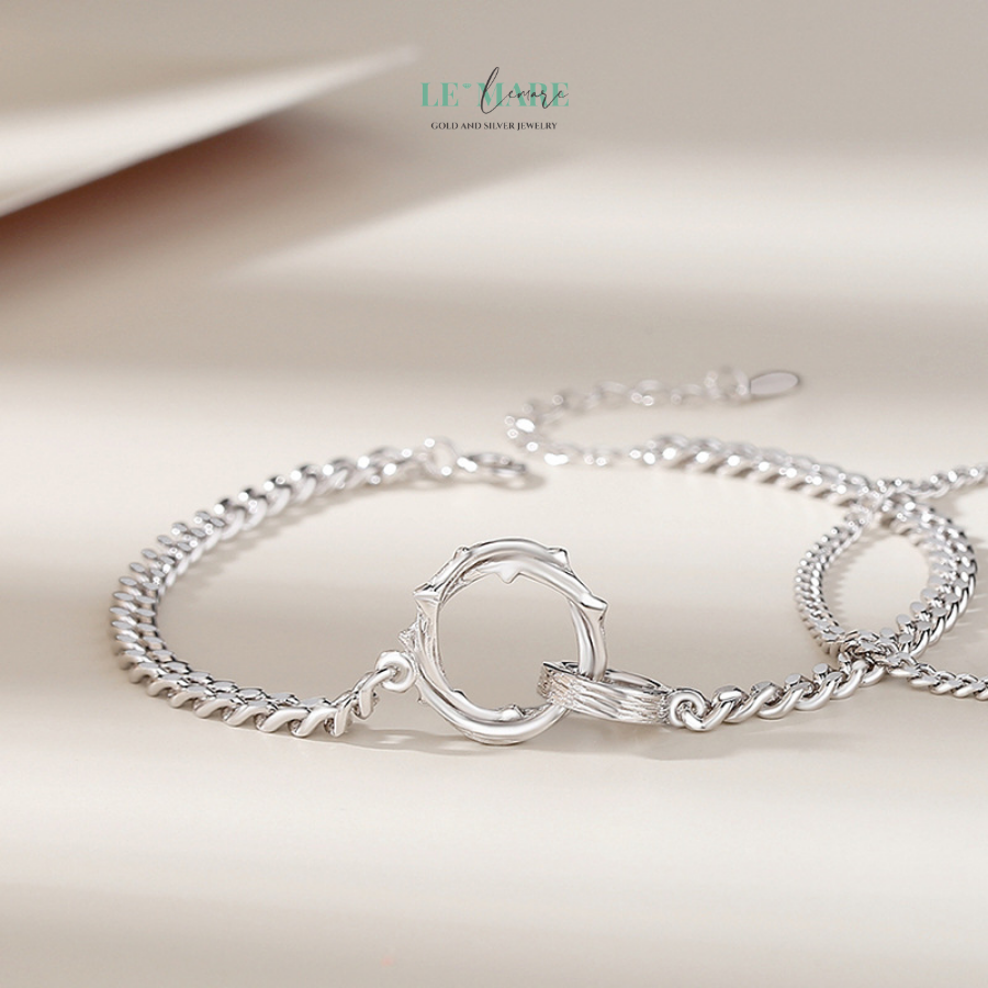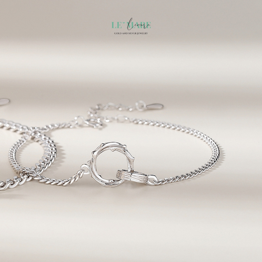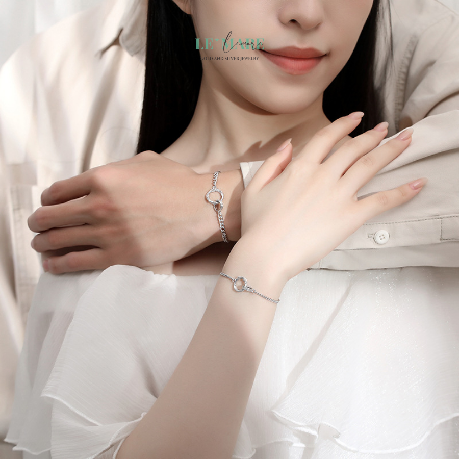 Chất liệu bạc cao cấp đảm bảo rằng vòng tay bạc đôi này sẽ luôn giữ được sự sáng bóng, bền đẹp qua thời gian. Đặc biệt, thiết kế với hai hình tròn đan xen lại tạo nên một vẻ đẹp vừa giản dị vừa lộng lẫy, dễ dàng làm xiêu lòng những ai yêu thích sự tinh tế, thanh thoát nhưng vẫn không thiếu phần sang trọng.
