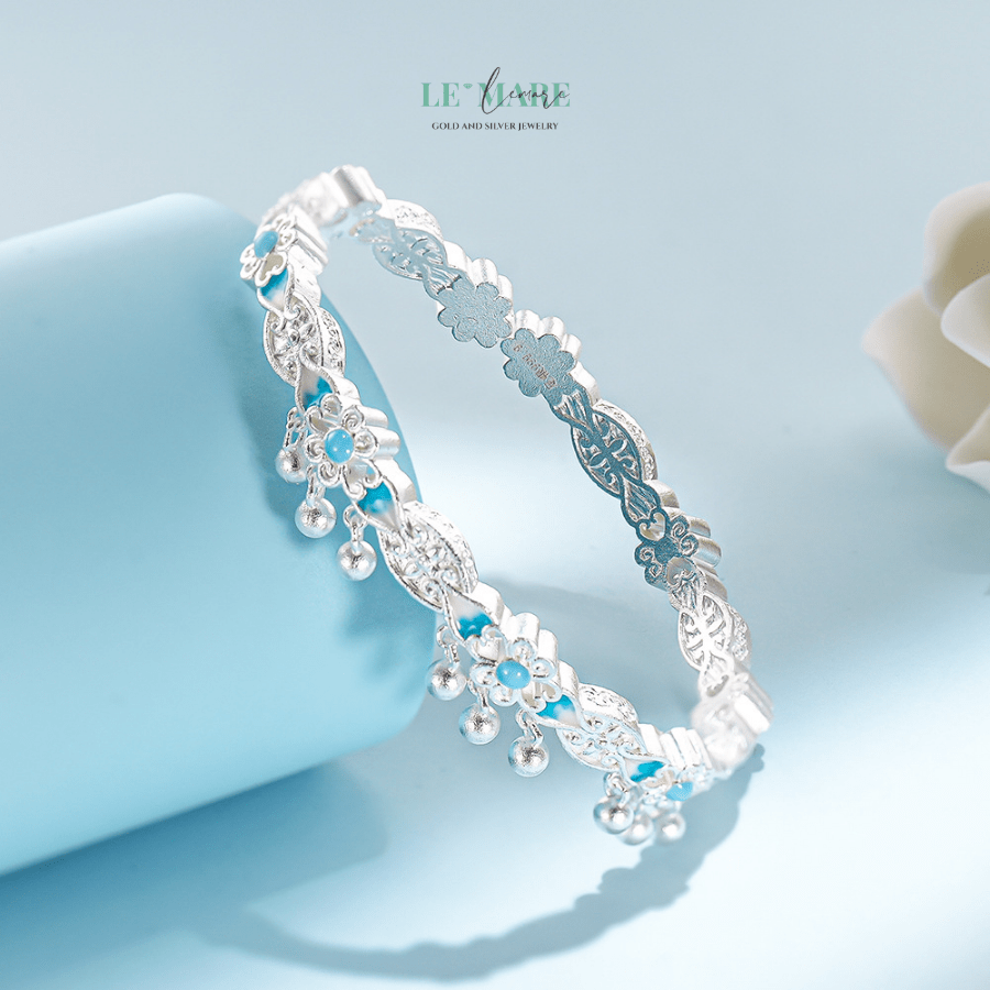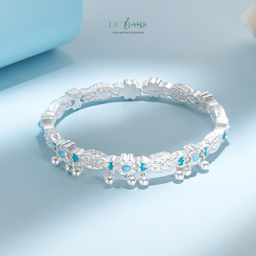 Giữa bao điều lấp lánh của thế giới trang sức, có một vẻ đẹp không cần lời phô trương, chỉ âm thầm tỏa sáng như sương sớm đọng trên cánh hoa – đó là Thanh Vi. Một chiếc vòng tay bạc nữ tinh xảo, dịu dàng, nơi hoa nở lặng lẽ trên nền xanh lam dịu mát, thổi vào tâm hồn người đeo cảm giác an yên và thanh tú đến lạ.