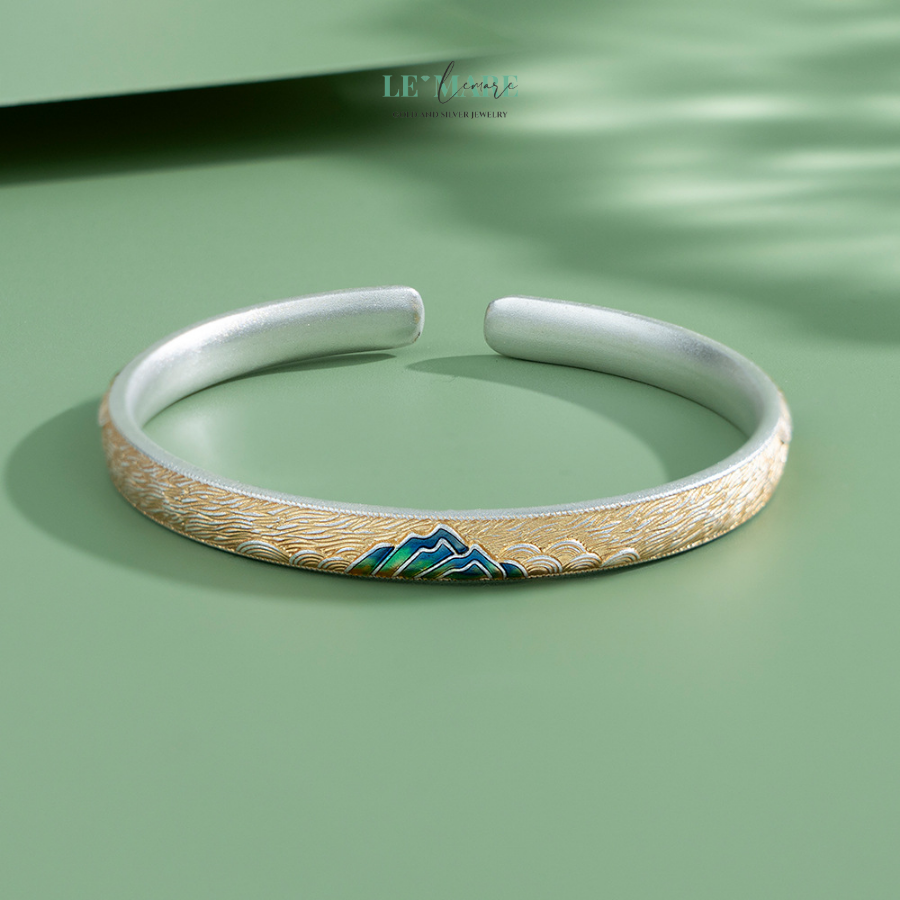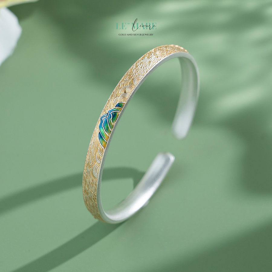 Không ồn ào, không phô trương, Phong Kim là sự kết hợp đầy tinh tế giữa chất liệu bạc cao cấp và nghệ thuật tạo hình mang đậm tinh thần phương Đông. Lấy cảm hứng từ gió lướt qua núi, từng đường cong mềm mại của chiếc vòng như ghi lại chuyển động vô hình của gió, tạo nên cảm giác thanh thoát, nhẹ bẫng khi đeo lên tay.
