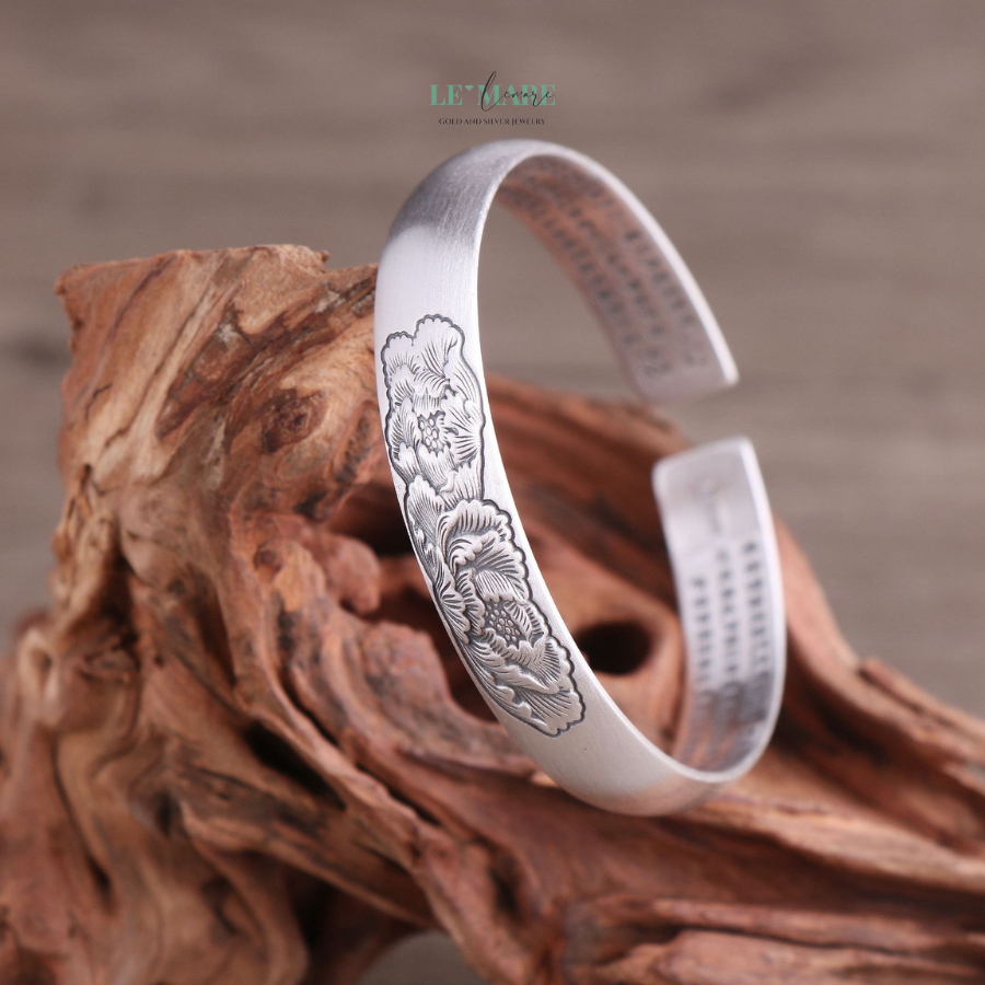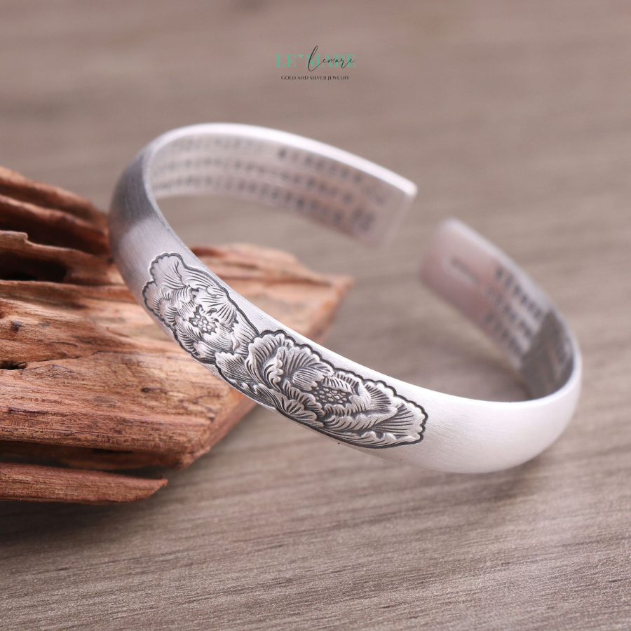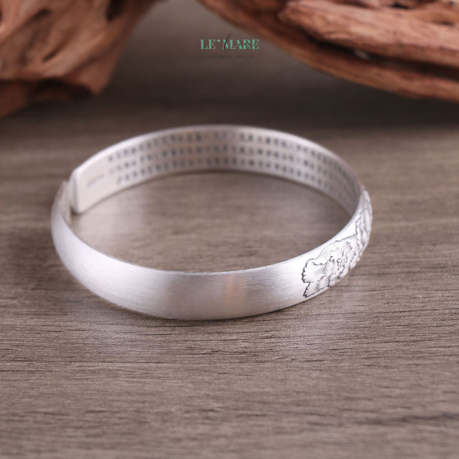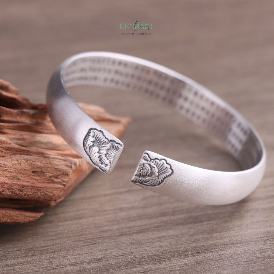 Mỗi đường nét đều được nghệ nhân chạm khắc như thể đang thiền – tĩnh lặng mà dứt khoát. Chiếc vòng tay bạc ấy như nói thay bạn một điều: “Tôi trân trọng vẻ đẹp tự nhiên, chân thành và đầy nội lực.”