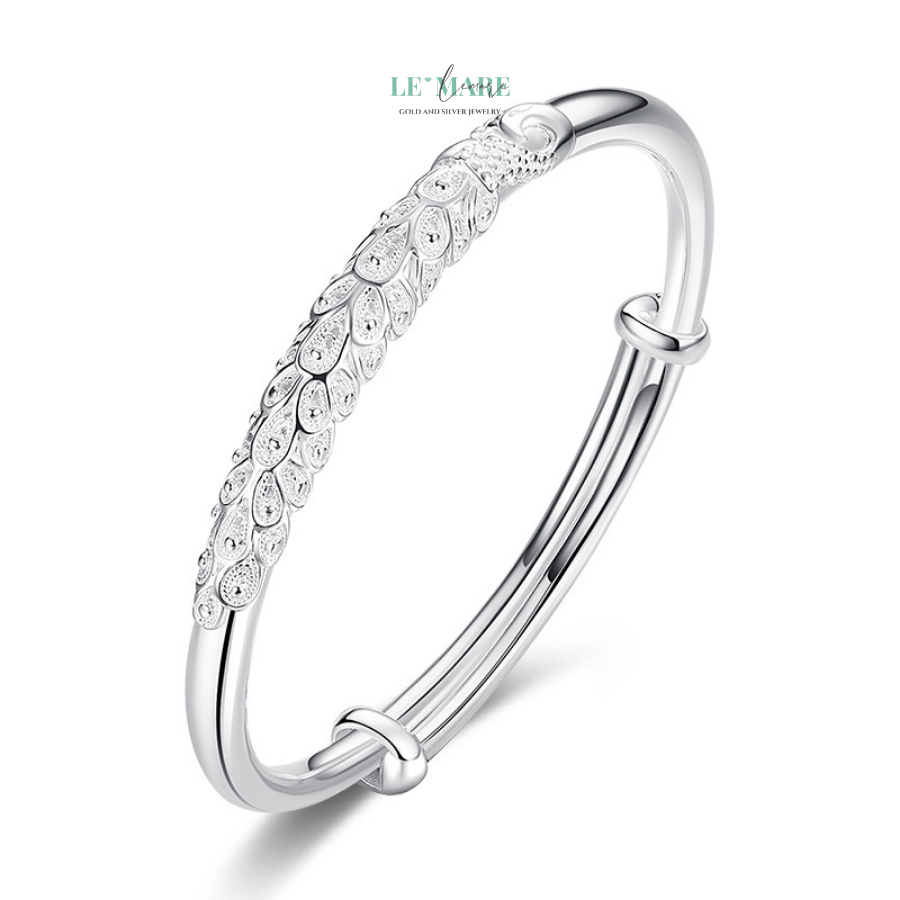 Không cần quá cầu kỳ hay lấp lánh sắc màu, Bạch Vân Tâm Nguyệt nổi bật giữa muôn vàn mẫu vòng tay bạc nữ bởi chính nét tinh khôi trong từng đường nét. Thiết kế uốn lượn mềm mại như áng mây trôi, hoa văn chạm khắc thủ công tinh tế như ánh trăng rọi xuống mặt hồ, chiếc vòng là biểu tượng của sự thuần khiết trong tâm hồn người phụ nữ.
