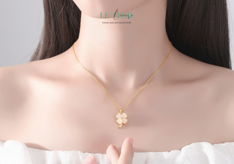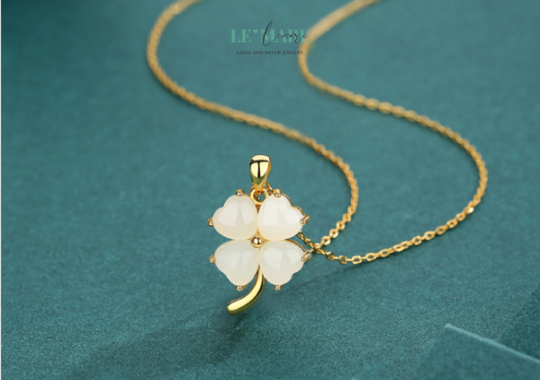 Người phương Tây tin rằng tìm thấy một cành cỏ bốn lá là tìm thấy điều kỳ diệu. Người phương Đông lại tin rằng ngọc bích mang linh khí của đất trời. Và khi hai niềm tin giao hòa trong thiết kế của “Lộc Diệp”, ta có được một món dây chuyền nữ hài hòa giữa thẩm mỹ hiện đại và ý nghĩa truyền thống – vừa trẻ trung, vừa trang nhã.