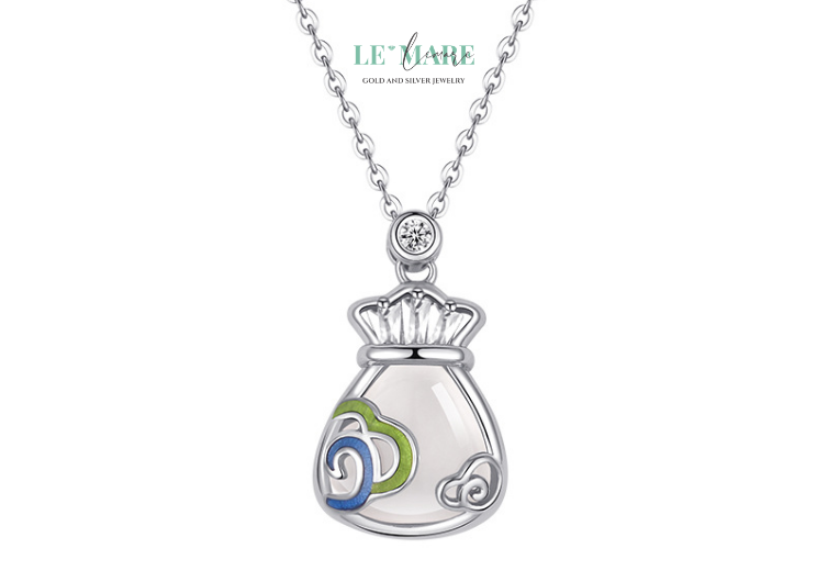 Khi ngọc bích được kết hợp cùng biểu tượng túi tiền – dấu ấn của tài lộc, và hình ảnh Thần Tài – vị thần mang lại của cải sung túc, chiếc dây chuyền không còn đơn thuần là món trang sức mà đã trở thành vật phẩm phong thủy, bảo hộ cho vượng khí của người sở hữu.