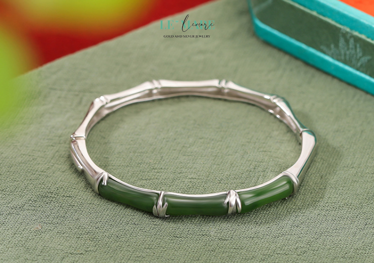 Lấy cảm hứng từ dáng trúc tự nhiên, sản phẩm sử dụng các đốt ngọc bích xanh biếc, được nắn khéo léo và nối liền bằng bạc S925 cao cấp. Kiểu dáng cứng cáp nhưng nhẹ nhàng, ôm tay vừa vặn, thích hợp với nhiều phong cách thời trang – từ thanh lịch công sở đến cá tính hàng ngày.