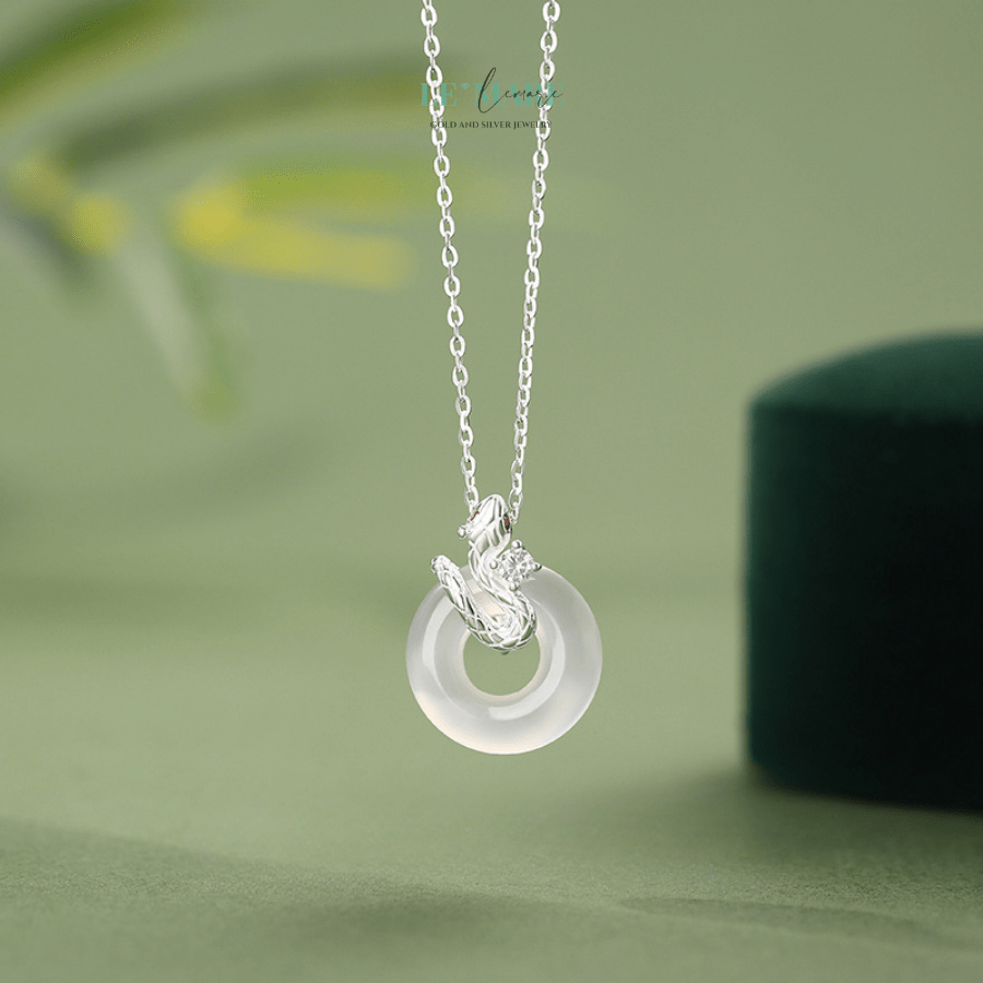 Không thể nói về Uẩn Xà mà bỏ qua ngọc bích – chất liệu làm nên linh hồn của chiếc vòng tay nữ đặc biệt này. Ngọc bích không chỉ là biểu tượng cho may mắn, cho phúc khí và an lành, mà còn được tin là mang khả năng chữa lành, thanh lọc tâm trí. Màu xanh ngọc của viên đá nằm yên giữa thân rắn bạc là hình ảnh khiến người ta khó lòng quên được.