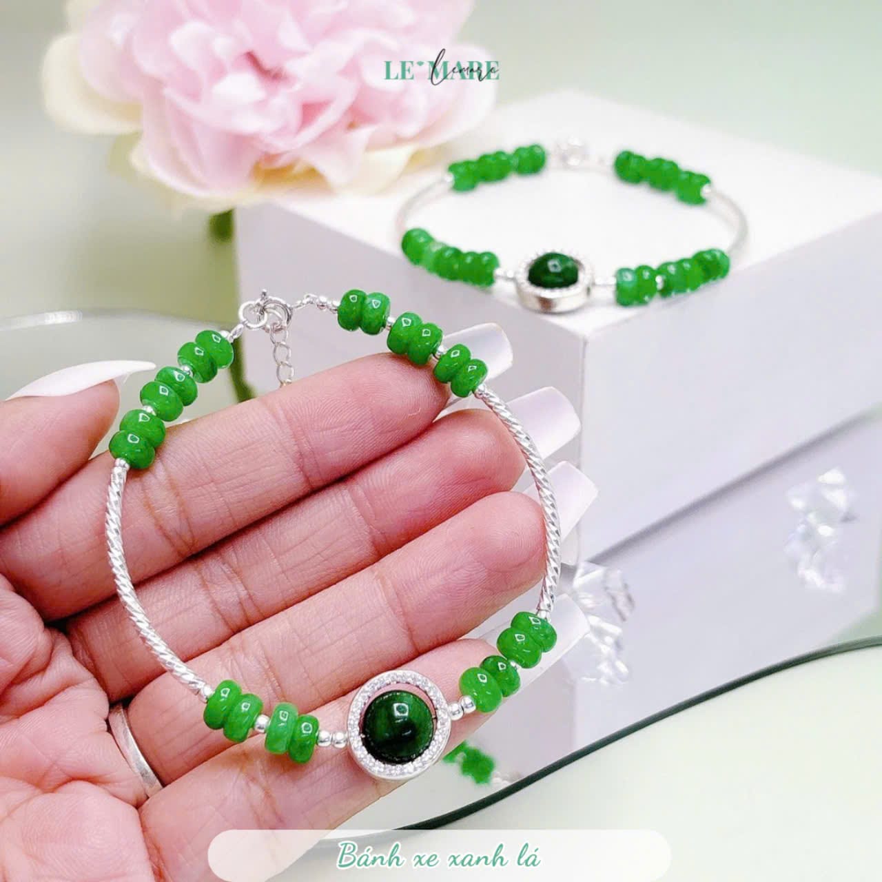 Vòng tay ống bạc bánh xe thạch anh xanh lá Le’Mare Jewelry – Gợi ý món quà độc đáo và ý nghĩa dành tặng người phụ nữ trân quý trong các dịp kỷ niệm, ngày lễ 20/10, 8/3…